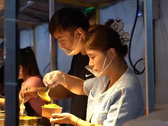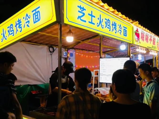 走進夜市,放眼望去,炸串、檸檬茶、臭豆腐、缽缽雞、鐵板魷魚等各類小吃美食一應俱全,商戶們忙得不亦樂乎,市民、遊客穿梭在各個攤位前。近千平方米的場地設有可移動餐車80輛,分為文創消費、特色美食、遊樂休閒等品類。同時,配備專職安全員進行巡崗。