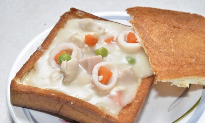 臺南當地知名的特色美食,光是菜名就令人覺得十分特別,其實棺材板只是將吐司中間挖空,填入雞肉、雞肝、蝦仁、紅蘿蔔、馬鈴薯、牛奶等配料,再以吐司蓋起, 這道小吃需趁熱切塊品嚐。據說這個名字的由來是一個考古學家嚐了這種湯,告訴廚師說,"這看起來就像我現在正在挖一個棺材。"於是,這道美食就採用了這個恐怖的中文名字"棺材板"。在臺南著名的花園路夜市和自強夜市都可以吃到。