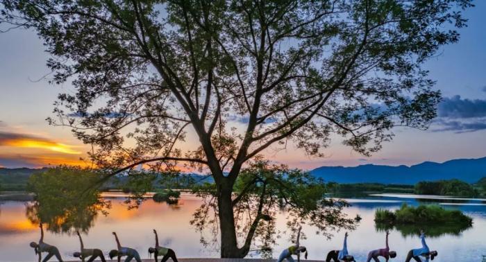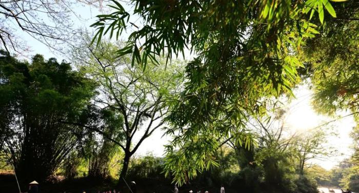 午後,遊客或品茶觀溪或枕著水聲小憩
