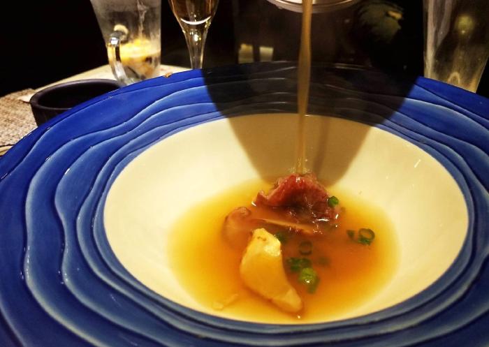 店擇址三江口寧波書城內,就餐空間,是我目前所到訪過的日料餐廳中最大的,室外歐式沿江風景位,暮觀晚霞,夜覽流彩,江風徐徐,甚為醉人;松茸牛肉湯,透著淡淡禪意的菜品,溫潤如玉,帶給我“明月松間照,清泉石上流。”的體味。