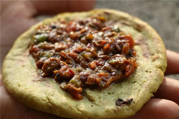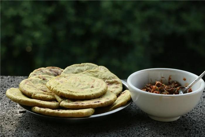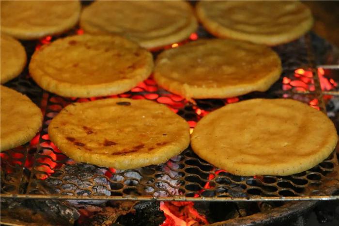 與之相應的,還有蕎粑粑,同種食材的不同吃法,將食物的特性發揮到極致,也滿足了不同人群的需求。在炭火上烤制金黃的蕎粑粑,還帶著溫熱,迫不及待地拿一塊放於掌心,加上特製調料,一口咬下去,蕎粑粑的味道便豐盈起來,此時,口腔中滿溢的都是時節慷慨的贈予。