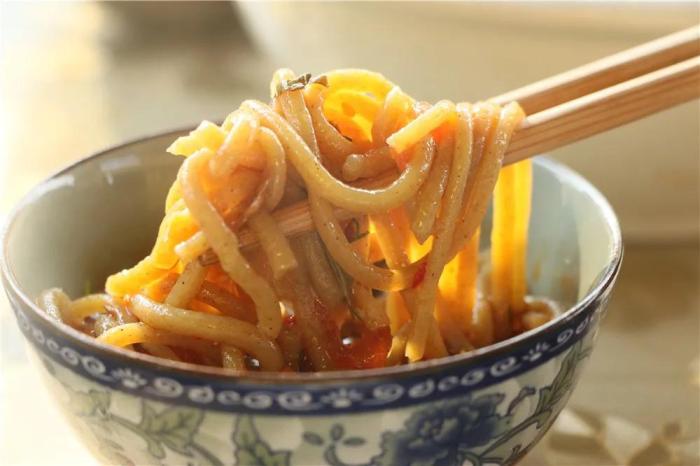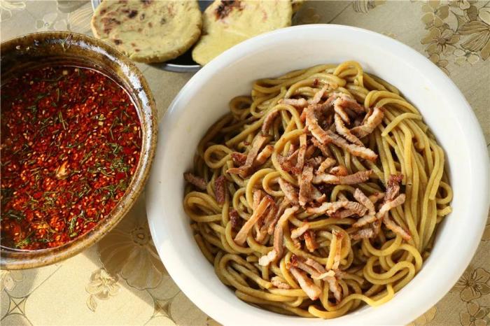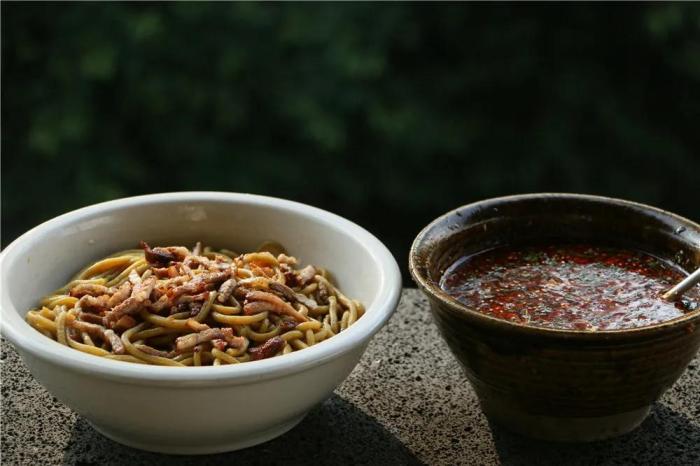 在品鮮香過後,來一碗板橋特色蕎米線,火燒西紅柿辣椒的蘸水,將酸辣滋味體現得淋漓盡致,色澤金黃的蕎米線,恰好到處的火燒肉,在特色蘸水的調和中,讓一種食物以多重滋味來詮釋,酸、辣、香、微苦的相融,恰如人生之味,細品方知味純。