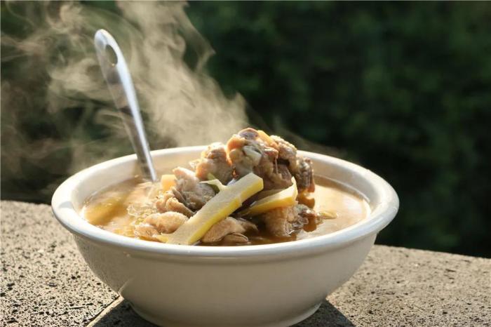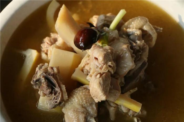 剝去外殼,清洗浸泡,切成塊與土雞一同熬煮時令美味,直至土罐中的湯悠悠冒出白氣,那經柴火慢燉的鮮甜才凸顯出來,縷縷滋味抽絲剝繭般襲來,撩動人的味蕾。
