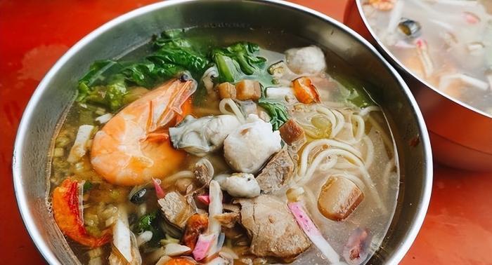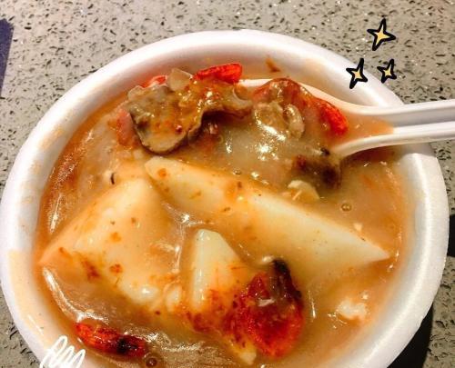 很多東港的居民都會把飯湯當作是早餐,一大桶湯裡有滿滿的配料,有魚板、肉燥、筍絲、櫻花蝦、碎魚肉和一些蔬菜,與高湯一起熬煮,再加進飯裡象是鹹粥一樣,吃完一碗會很有飽足感,一天的開始一定要來上一碗飯湯啦!