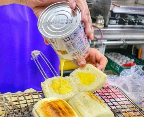 有炸饅頭也有烤饅頭,這一間用炭火慢慢的炭烤,外表上有炭火烤出來的焦香,裡面還會裹上奶油與煉乳,外酥內軟再帶點奶油的香氣,非常罪惡呀~還有其他口味,起司烤饅頭裡面放上一大片的起司片,喜歡起司的朋友一定要加點,再配上一杯豆漿,就是完美的套餐啊!